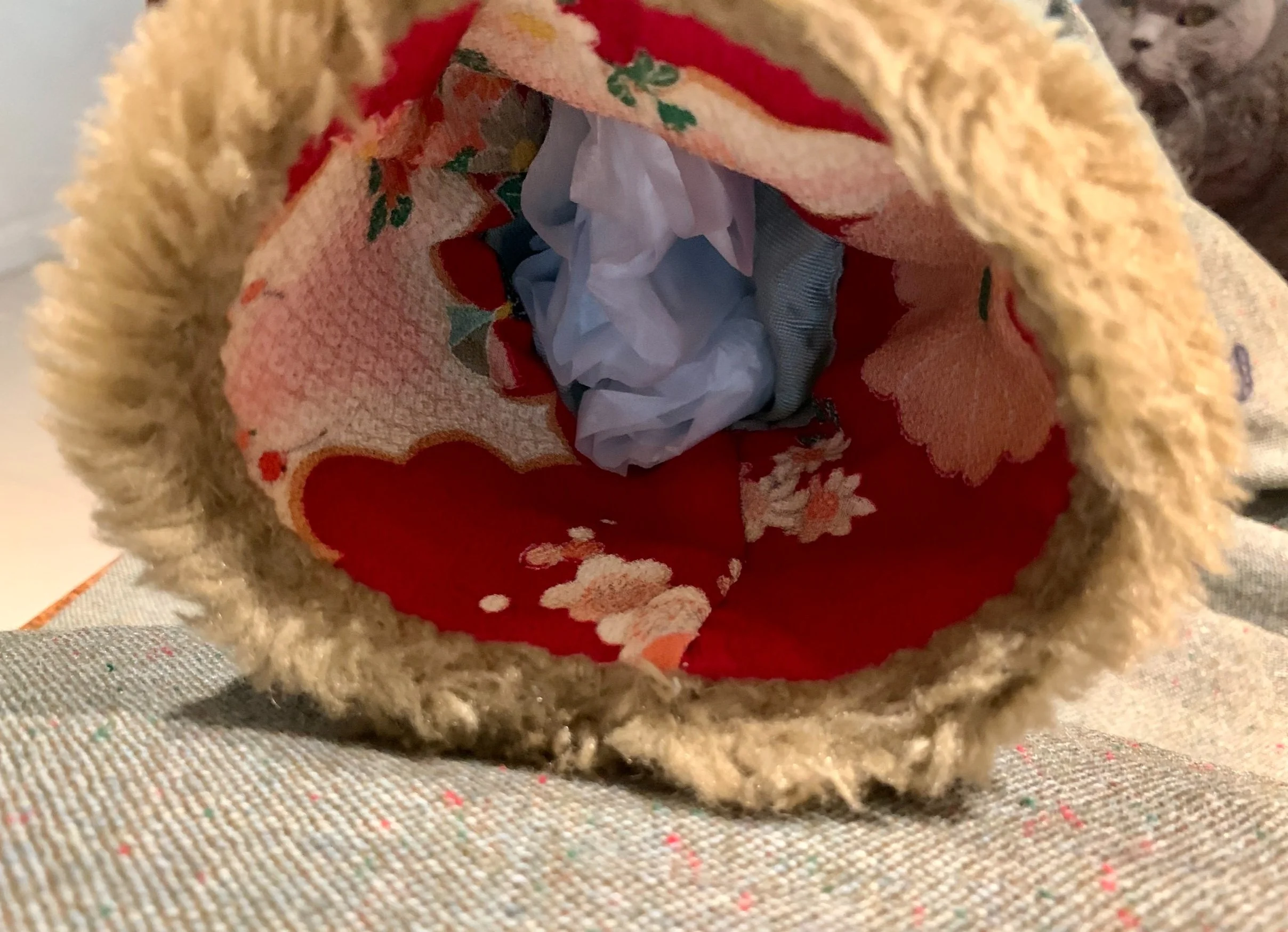The jacket lives on! The fake fur cuffs are now lined with pieces of Chinese cloth my eldest sister brought back from one of her many travels for me. The moths (or whatever ate the jacket) were voracious and ate through areas of the lining too which I’ve yet to replace. At some stage I will do this, but only when I’ve found the perfect colour of lining cloth.