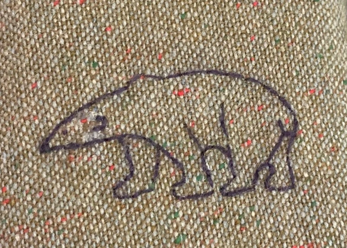 This jacket is part of a suit which belonged to my Granny who died in the early 1980s. I’m pretty certain it was purchased in Edinburgh: other than a couple of trips to visit us in England my Granny never left Scotland. Branded as “Woodcock Sport” and I think dating from the 1930s it’s now close to a century old.