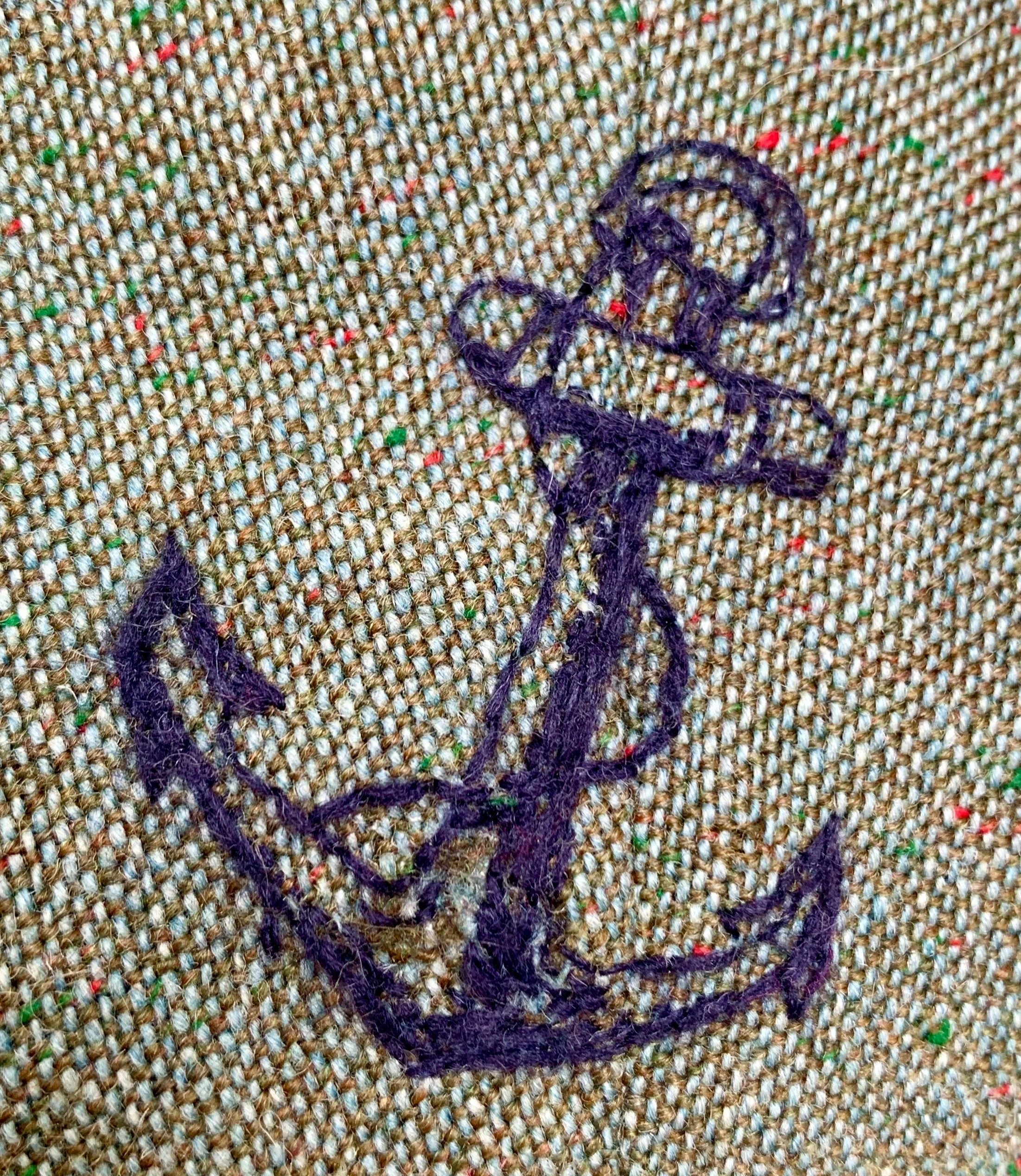 Then my Dad died. Some considerable time later I saw an IG post by Mary Horesh Ealing Repair cafe. She was organising a sustainable fashion show. The impetus I need to sort my jacket - a eureka moment – Tattoos! Not that my father had any. But he was in the Navy during the 2nd World War. And so the damage to the outside has been darned with classic sailor tattoos. They are replete with symbolism (see below). As the photos show I haven’t completely hidden the damage just worked with navy (ha ha) darning thread over the top. In this way if you look closely the battle scars are evident.